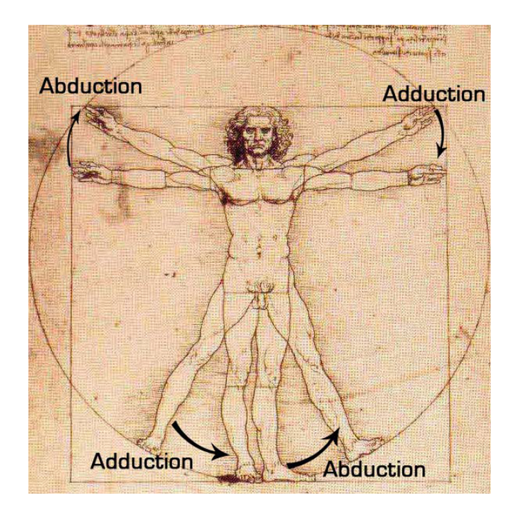 Abduction – moving a body part away from the midline (lifting the leg away from the body to form an angle with the side of the body). Moving away from the sagittal plane.