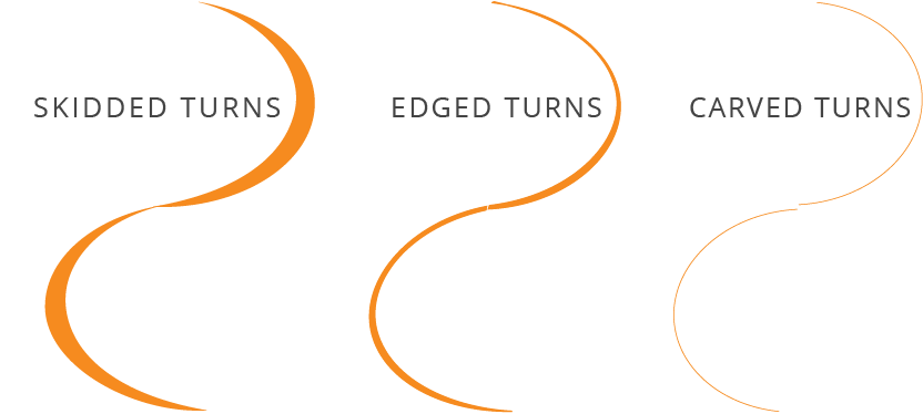 Skidded turns refer to a particularly low edge angle and smooth steering movements. Beginner snowboarders should be encouraged to create skidded turns to help them develop edge awareness and balance. Skidded turns will also be used by intermediate and advanced riders in situations where they need to keep their speed down or maintain balance.